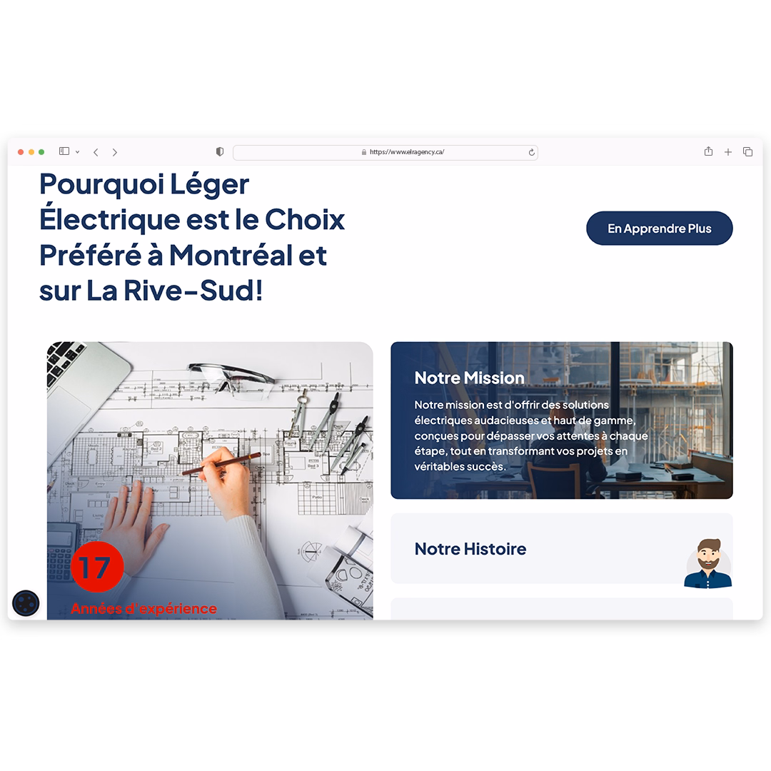 Léger Électrique is an electrician company in the Greater Montreal area. When the owner started his business, he had nothing online. No logo. No website. No system to track customers.